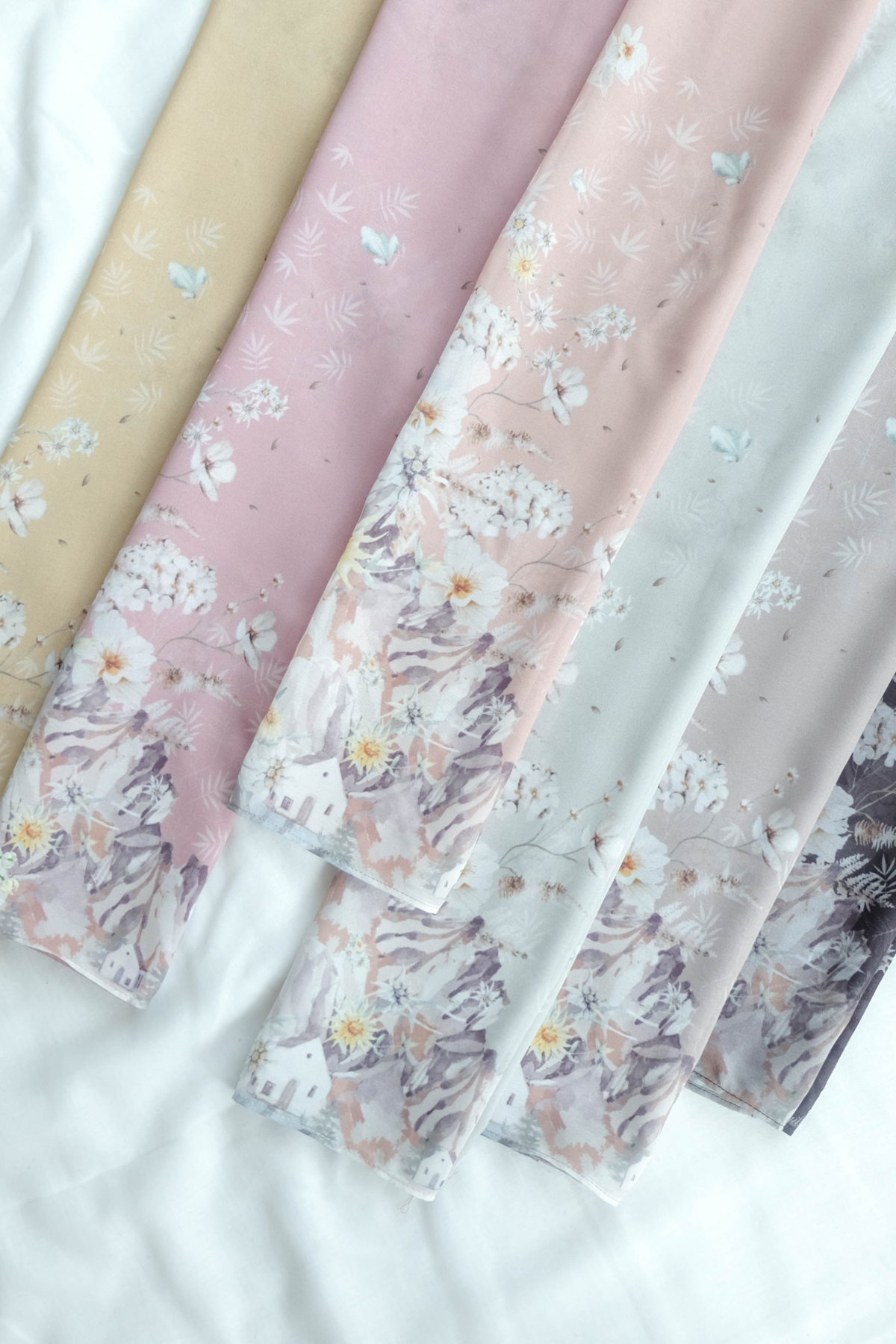 dari keindahan nuansa pegunungan dan panorama dataran tinggi dengan nuansa bunga khas yaitu bunga Edelweiss yang melambangkan kesetiaan dan keabadian. Diproduksi dengan teknologi printing watercolor style khas @hijabwanitacantik seperti lukisan mewah. Cantik dan syahdu banget ! dijamin membuat penampilan kamu makin berkesan!