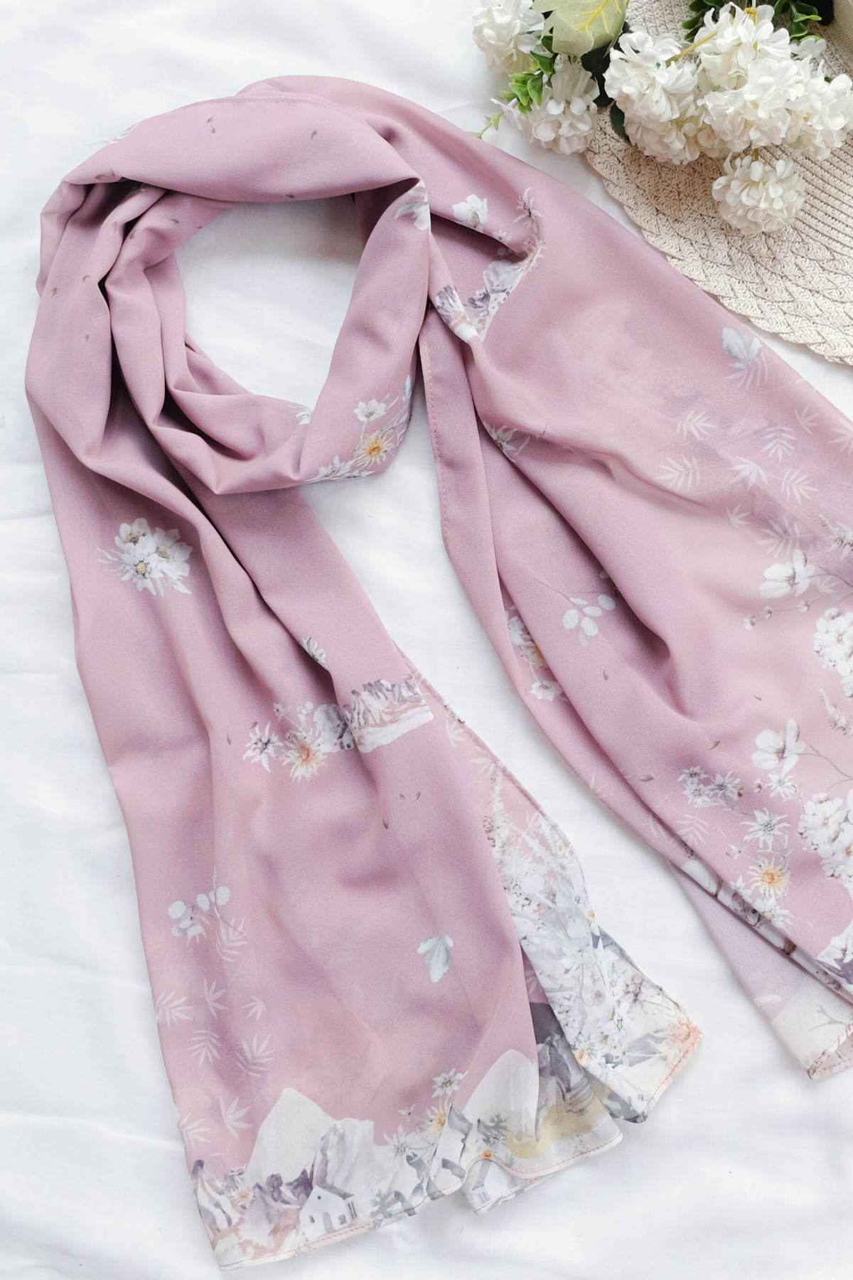 Pashmina printing desain Edelweiss Series dengan bahan cerutti babydoll ORIGINAL khas Hijab Wanita Cantik seperti bahan Pashmina Cyra yang sudah tidak diragukan lagi kelembutannya, best quality , bukan yang kasar dan kaku, ini super lembut dan extra flowy 😍