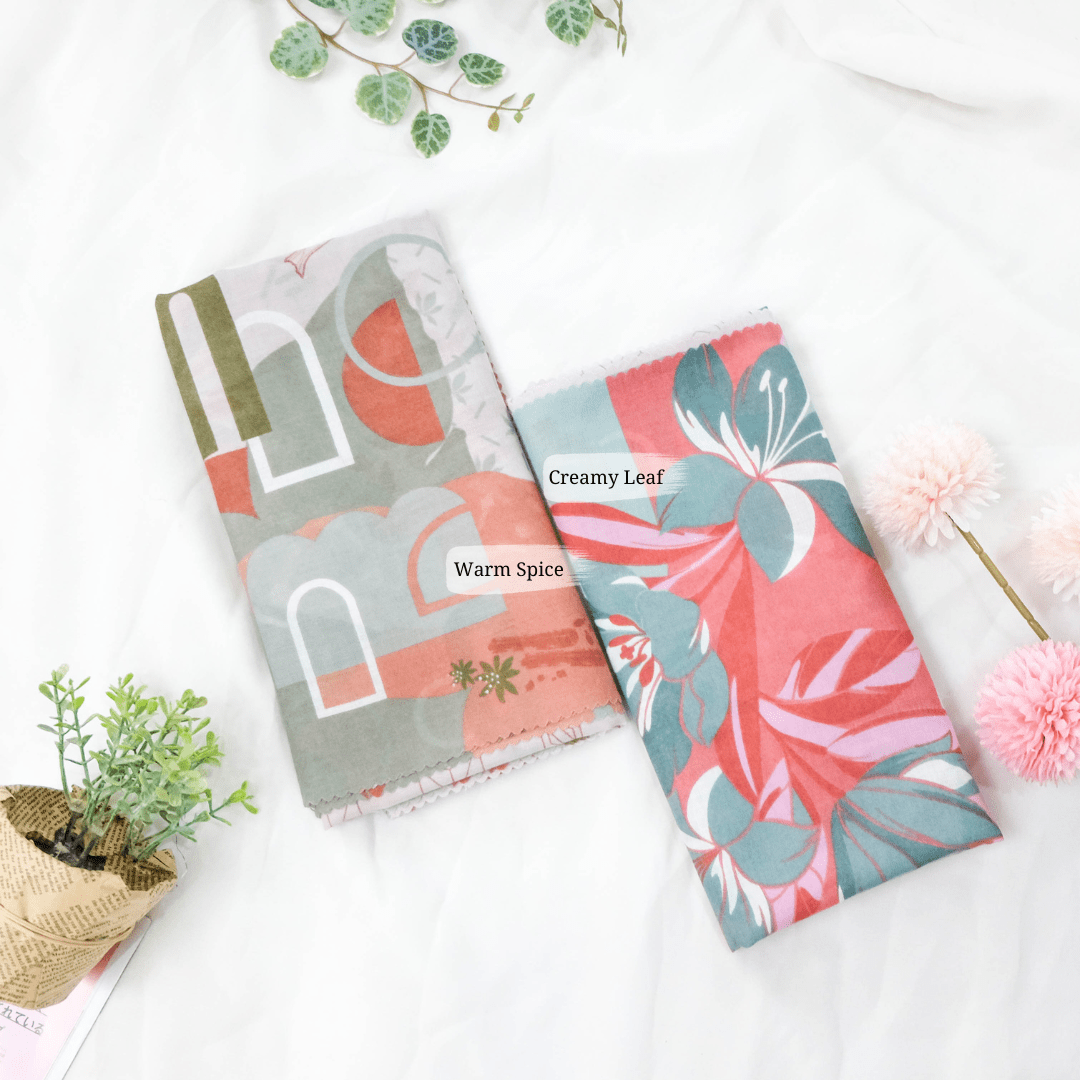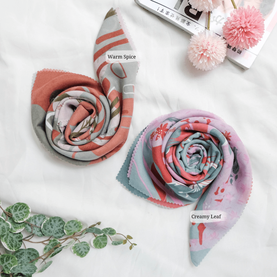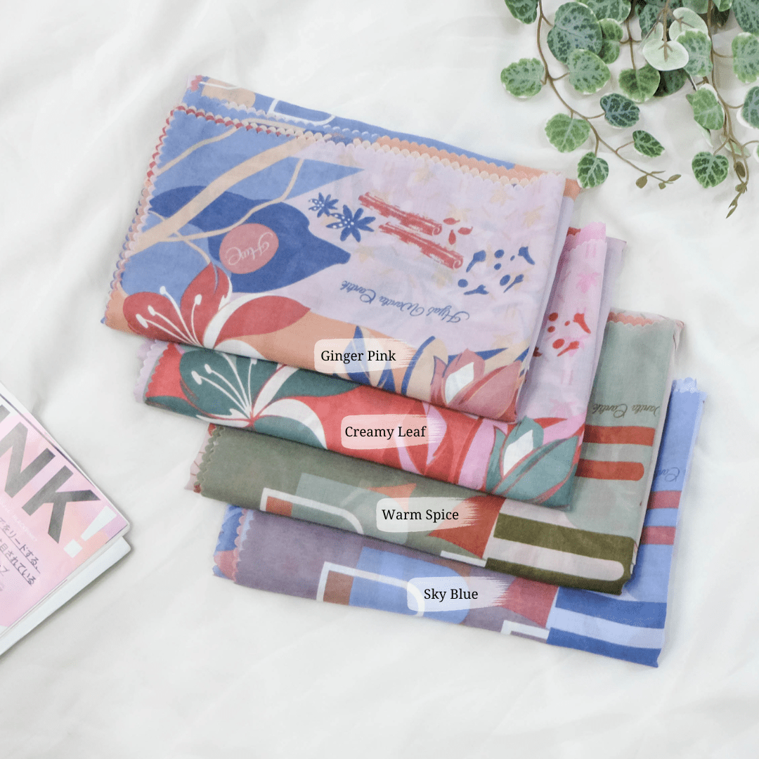 Hijab voal printing motif yang yang terinspirasi dari cinnamon atau kayu manis yang merupakan rempah-rempah yang sangat identik dengan kue-kue manis. Dengan kombinasi warna-warna pastel yang lembut serta motif abstrak yang simple memberi kesan playful & sweet! sangat cocok dipadu dengan outfit polos kamu, membuat penampilan semakin berwarna dan ceria! buat kamu Cewek Kue maupun Cewek Bumi wajibb banget punya nih!