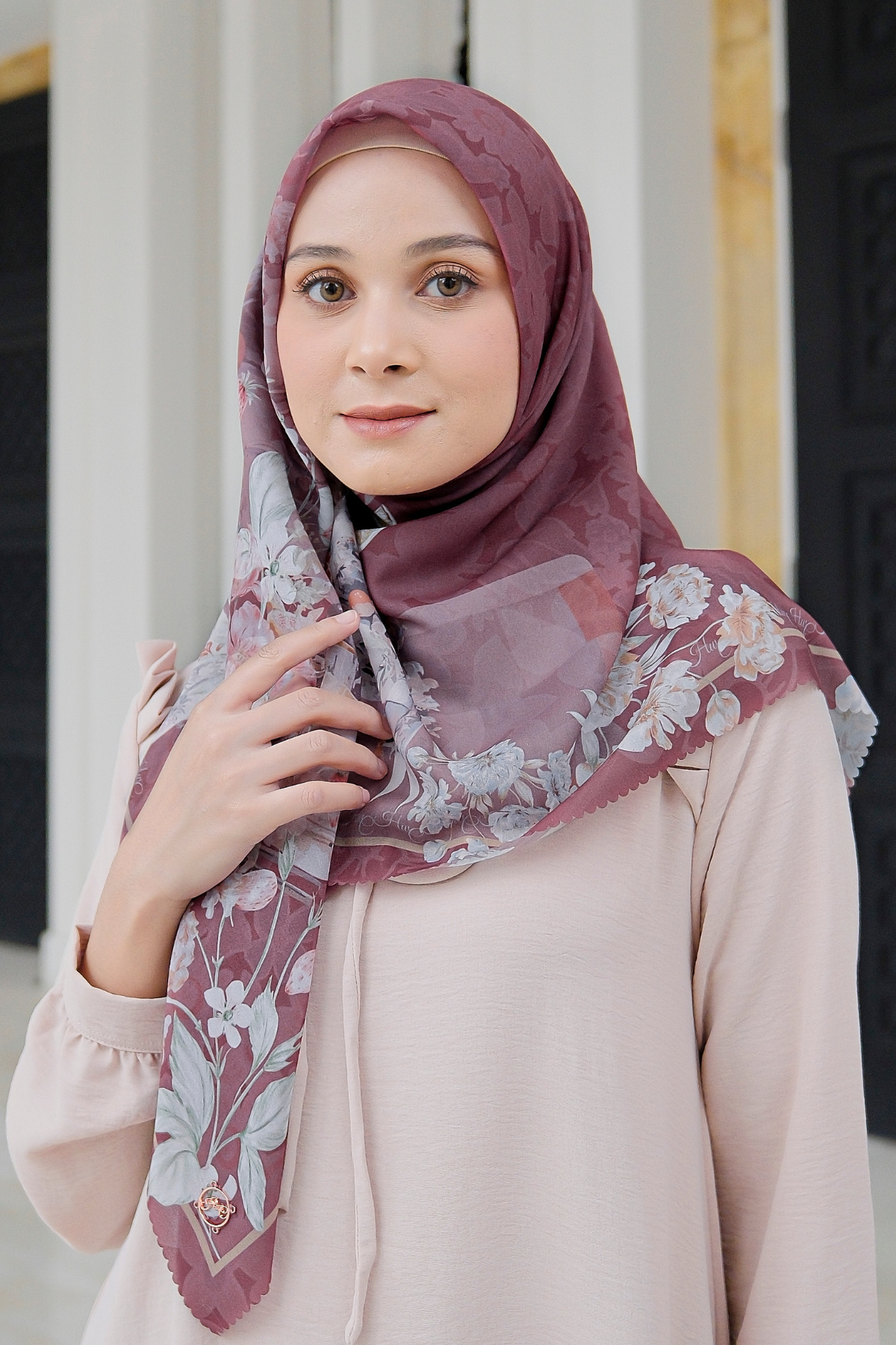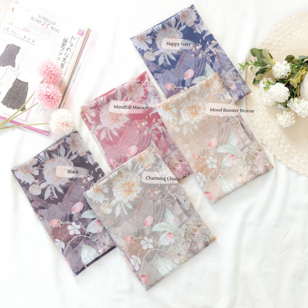 Hijab segiempat premium dengan motif yang terinspirasi dari Camellia sinensis atau tanaman teh, yang memberi nuansa kehangatan dan ketenangan. Motif bunga-bunga extra mewah dengan detail seperti lukisan! Dipadu dengan motif gelas cangkir klasik serta warna-warna yang soft memberikan penampilanmu semakin cantik & percaya diri