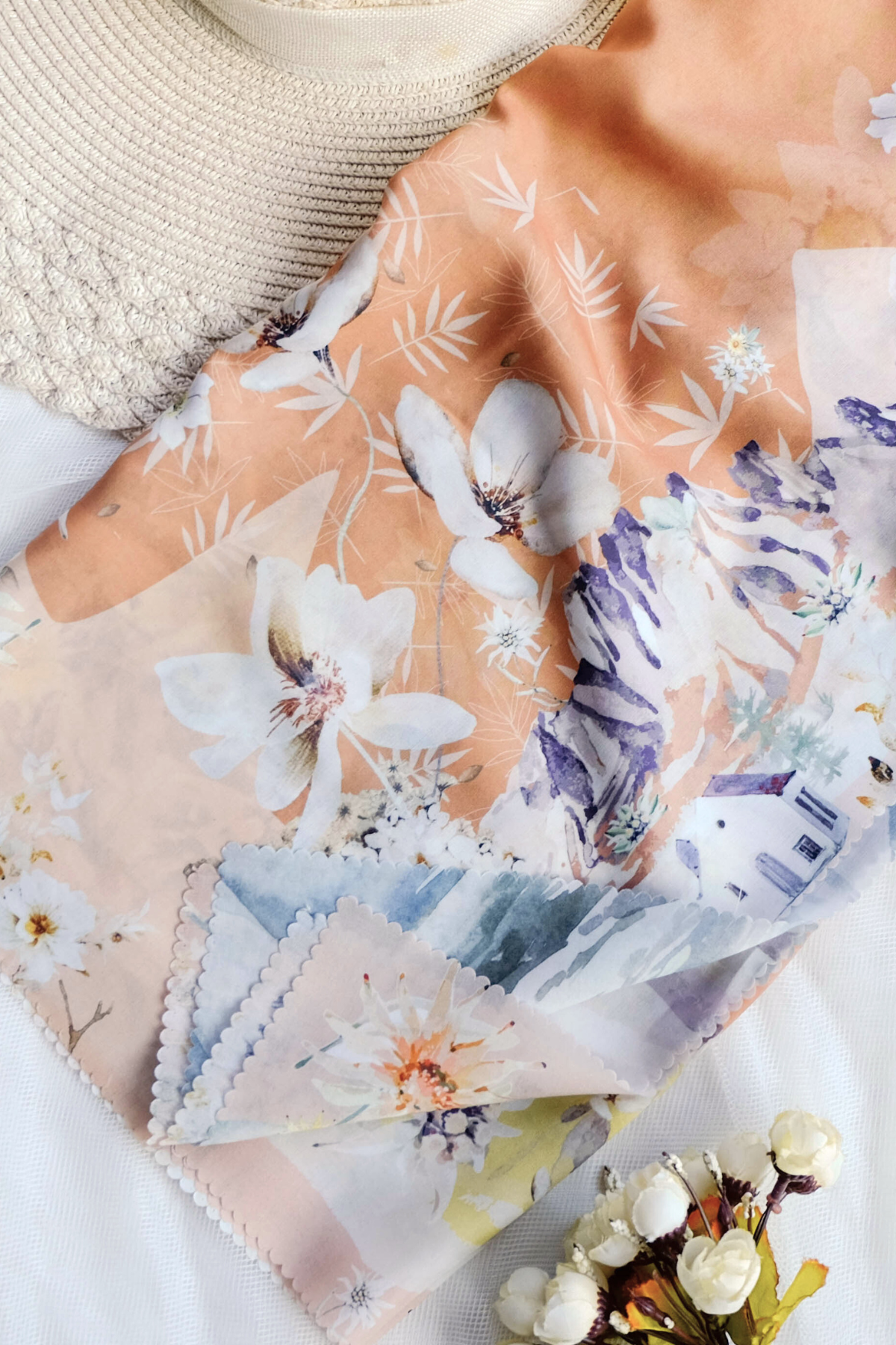 Hijab segiempat premium dengan motif terinspirasi dari keindahan nuansa pegunungan dan panorama dataran tinggi dengan nuansa bunga khas yaitu bunga Edelweiss yang melambangkan kesetiaan dan keabadian. Diproduksi dengan teknologi printing watercolor style khas @hijabwanitacantik seperti lukisan mewah. Cantik dan syahdu banget ! dijamin membuat penampilan kamu makin berkesan!