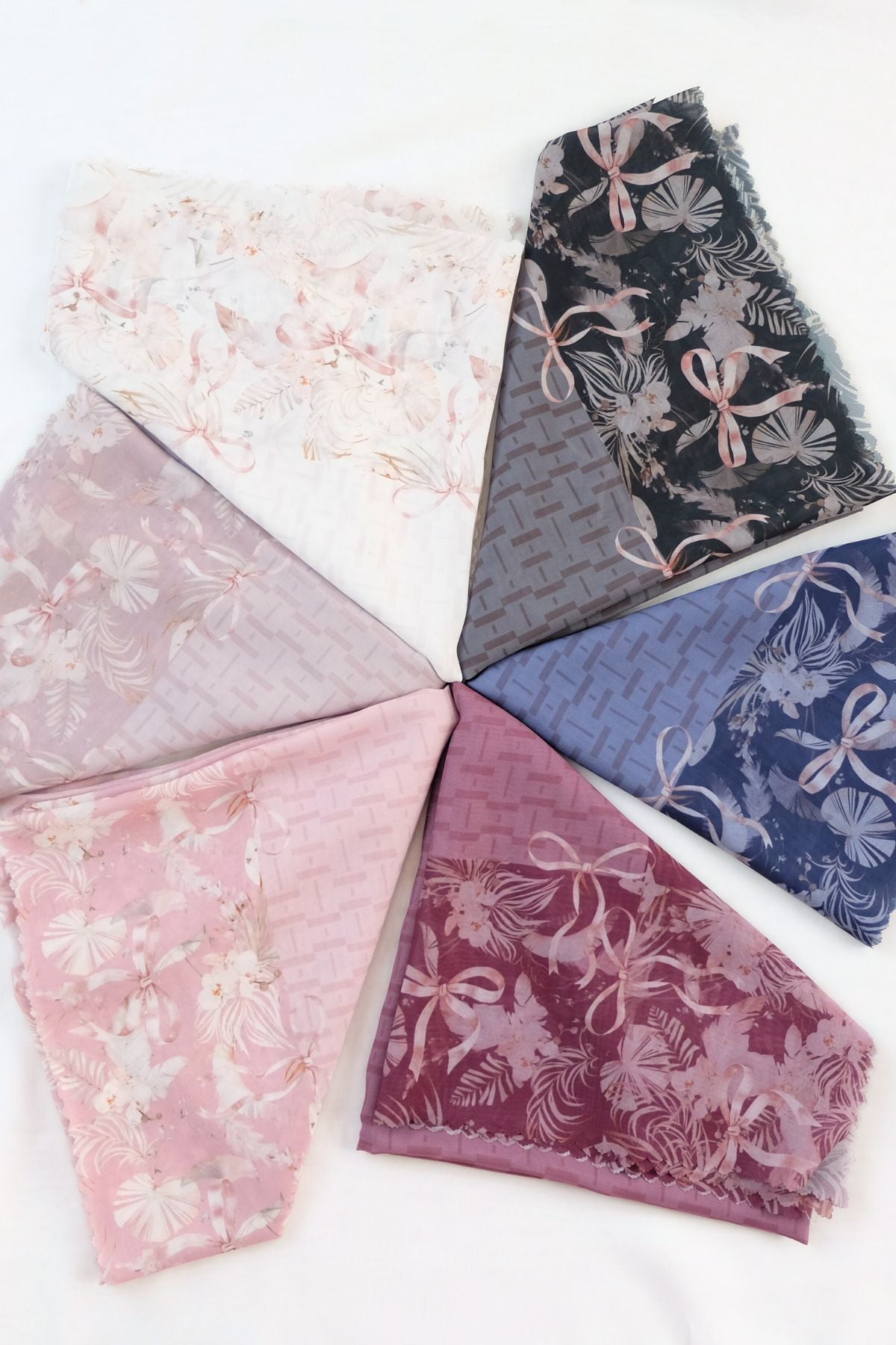 Emily series kini hadir dengan pattern signature monogram Hira. Hijab printing dengan motif exclusive yang terinspirasi dari tema vintage garden yaitu nuansa keindahan bunga-bunga di taman dengan dekorasi klasik yang memukau dipadu dengan pita coquette yang trendy. Pada bagian tengah scarf terdapat monogram logo Hira, sangat elegan dan timeless.
