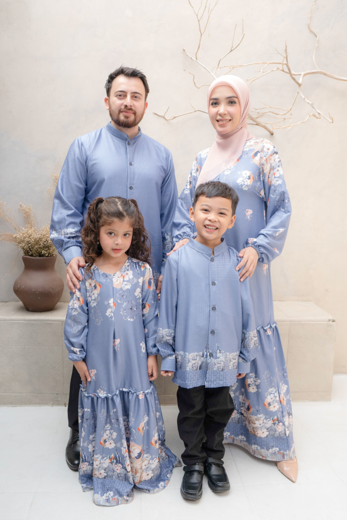 Riuh Kota menceritakan nuansa perkotaan yang modern, sibuk, dan dinamis. Dengan pattern gedung2 menjulang. Motif gedung dipadu dengan bunga yang cantik untuk dress ibu dan anak perempuan . Pattern lukisan gedung serta abstrak pada baju koko ayah dan anak laki-laki. Apabila dipakai bersama memberi kesan kompak dan harmonis penuh kebahagiaan.