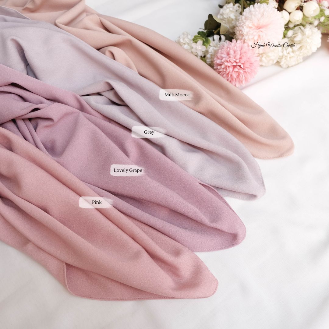 Pashmina dengan desain oval yang bisa menutup area punggung. Simpel dan manis banget. Dengan bahan pastelin crepe yang halus dan nyaman, tebalnya pas dan tidak nerawang lho! Ukuran 85 x 142 cm pas banget dibentuk.