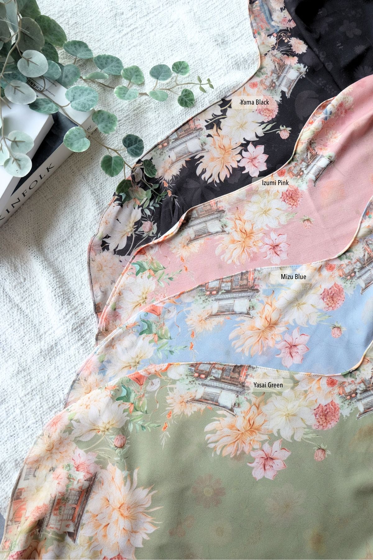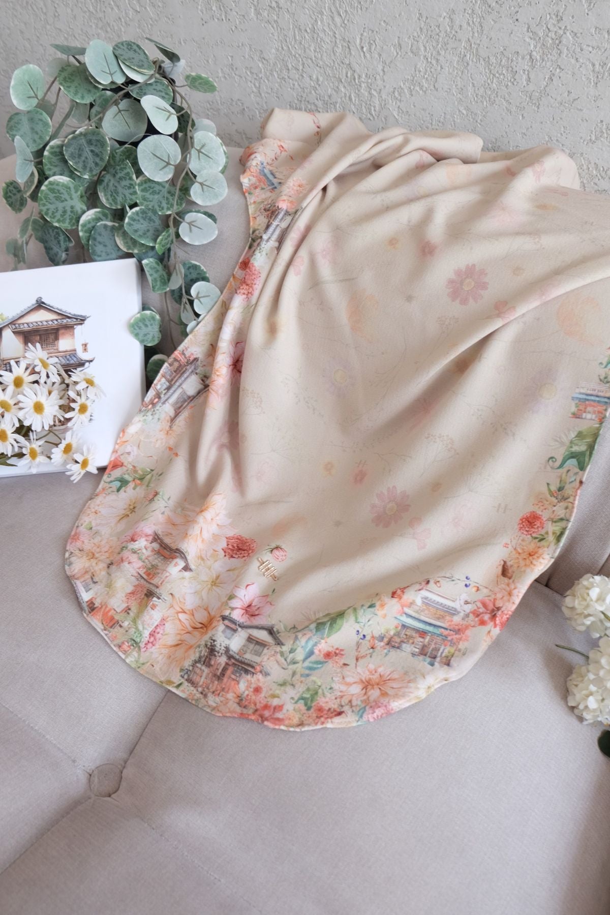 Dengan motif bunga yang cantik dipadu dengan motif “traditional house japan” yang klasik dan unik namun tetap memberikan nuansa hangat dengan keindahannya.