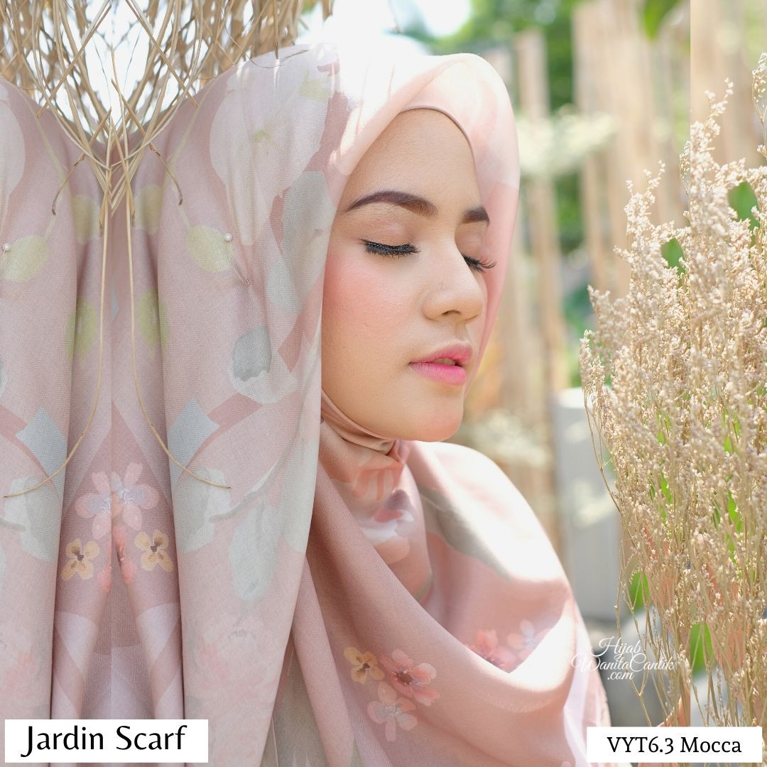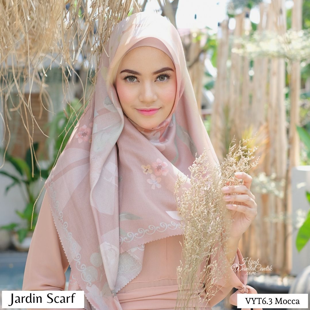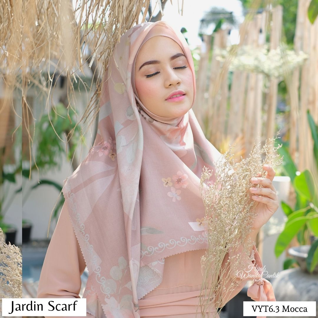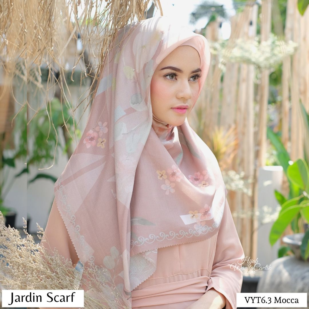 Hijab segiempat premium dengan motif exclusive yang terinspirasi dari taman kota. Jardin artinya taman. Motif bunga dan bentukan geometris dipadu dengan warna yang lembut memberi kesan yang sangat cantik. Bahan Rocky Voal Premium, terbaru! Lebih tebal dan ada variasi tekstur anyaman unik. Ukuran 115x115 cm, Finishing lasercut oval desain baru dijamin suka deh!