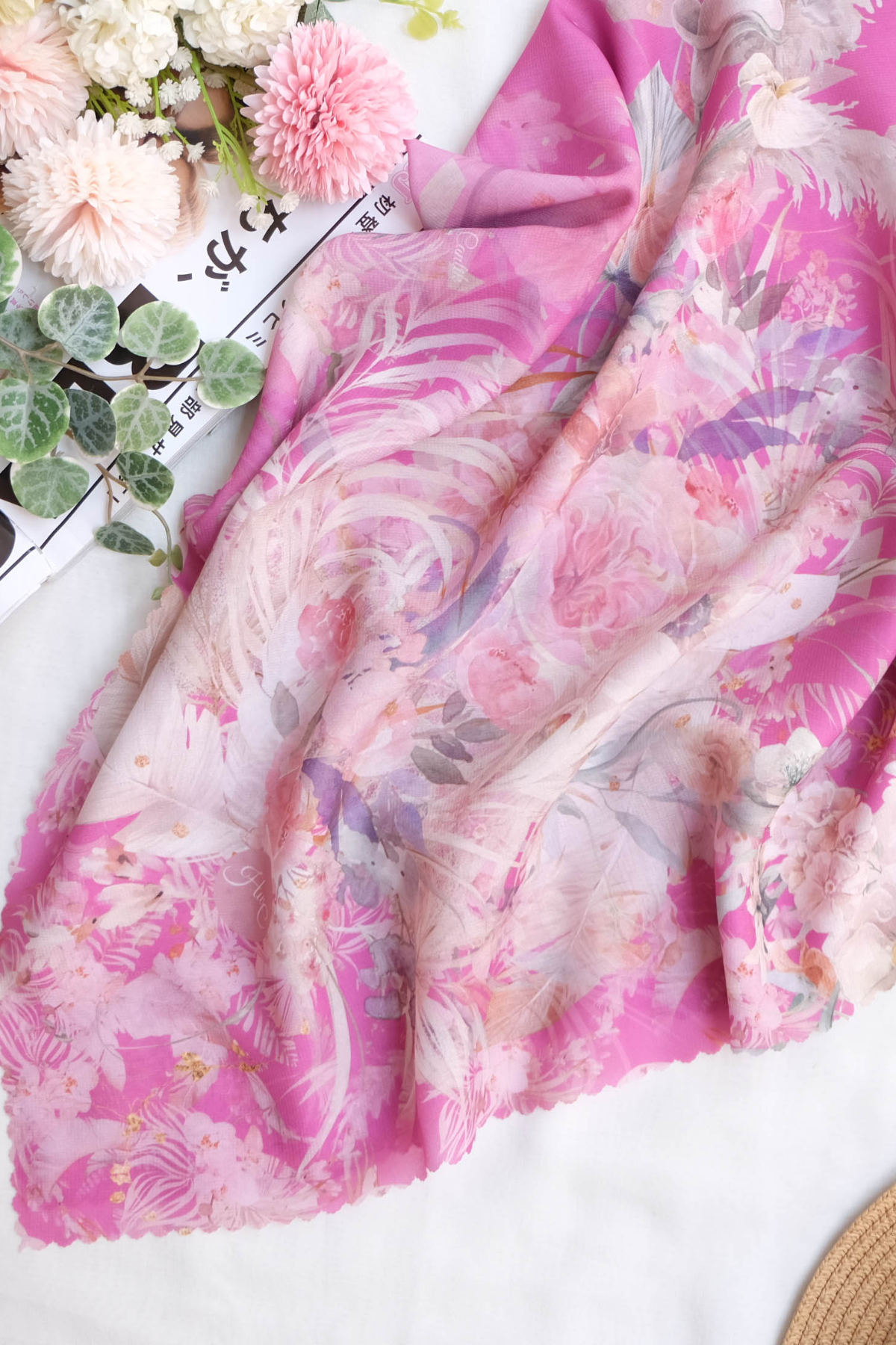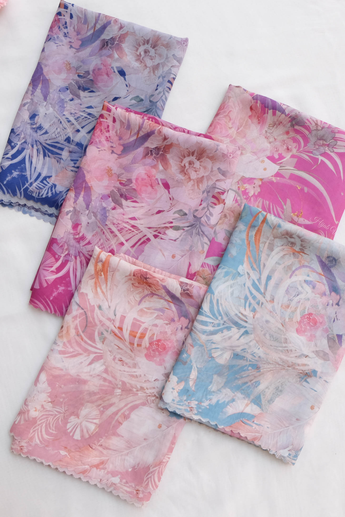 Hijab printing dengan motif exclusive Emily Series yang terinspirasi dari tema vintage garden yaitu nuansa keindahan bunga-bunga di taman dengan dekorasi klasik yang memukau. Dengan perpaduan warna-warna pastel yang lembut serta motif bunga yang sangat beragam menggambarkan rangkaian aneka bunga yang tertata cantik di taman. Pada bagian tengah scarf terdapat ornamen-ornamen abstrak dengan warna yang menyatu dengan warna dasar, sehingga memberi kesan clean dan elegan saat dipakai.