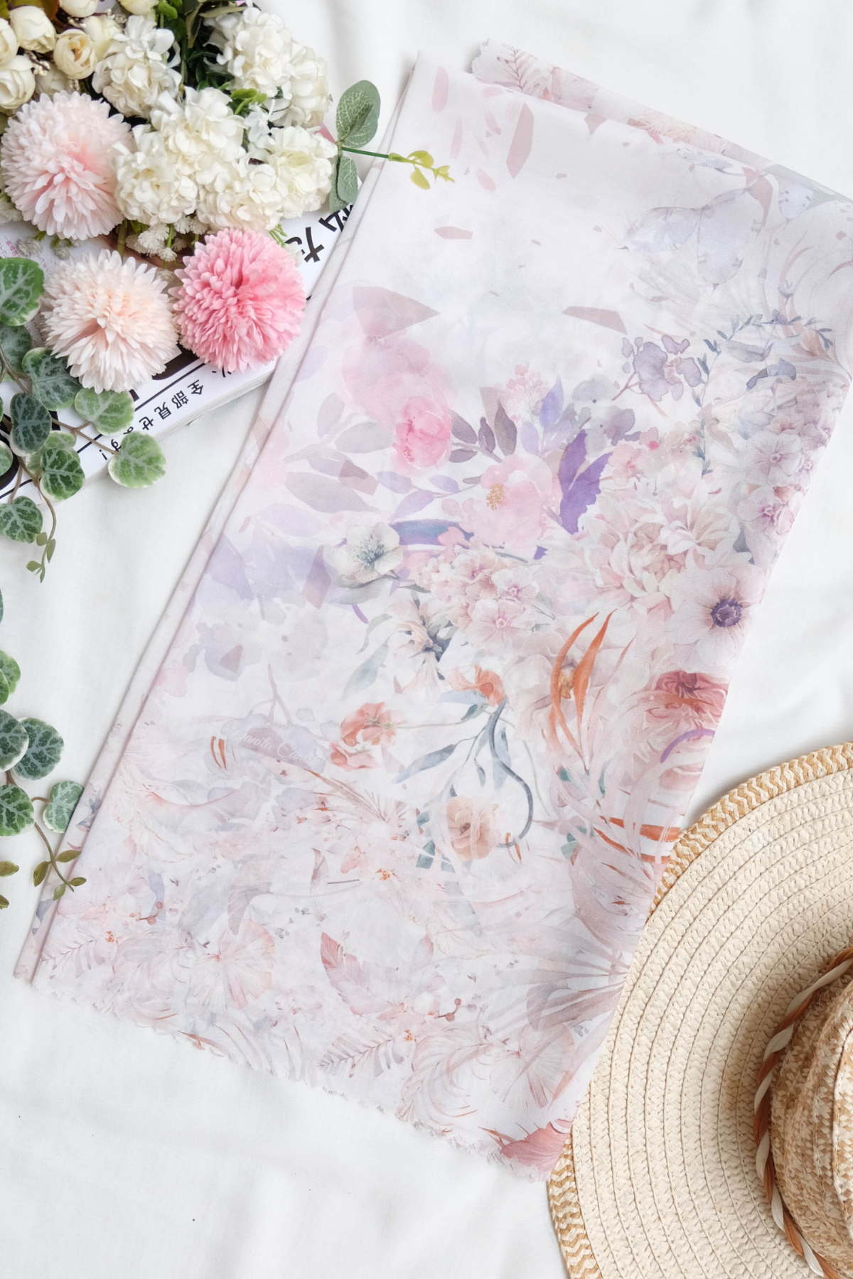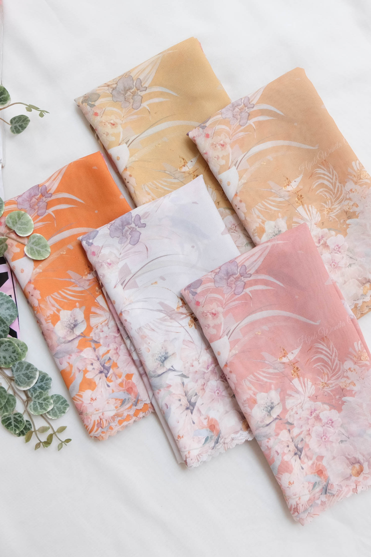 Hijab printing dengan motif exclusive Emily Series yang terinspirasi dari tema vintage garden yaitu nuansa keindahan bunga-bunga di taman dengan dekorasi klasik yang memukau. Dengan perpaduan warna-warna pastel yang lembut serta motif bunga yang sangat beragam menggambarkan rangkaian aneka bunga yang tertata cantik di taman. Pada bagian tengah scarf terdapat ornamen-ornamen abstrak dengan warna yang menyatu dengan warna dasar, sehingga memberi kesan clean dan elegan saat dipakai.