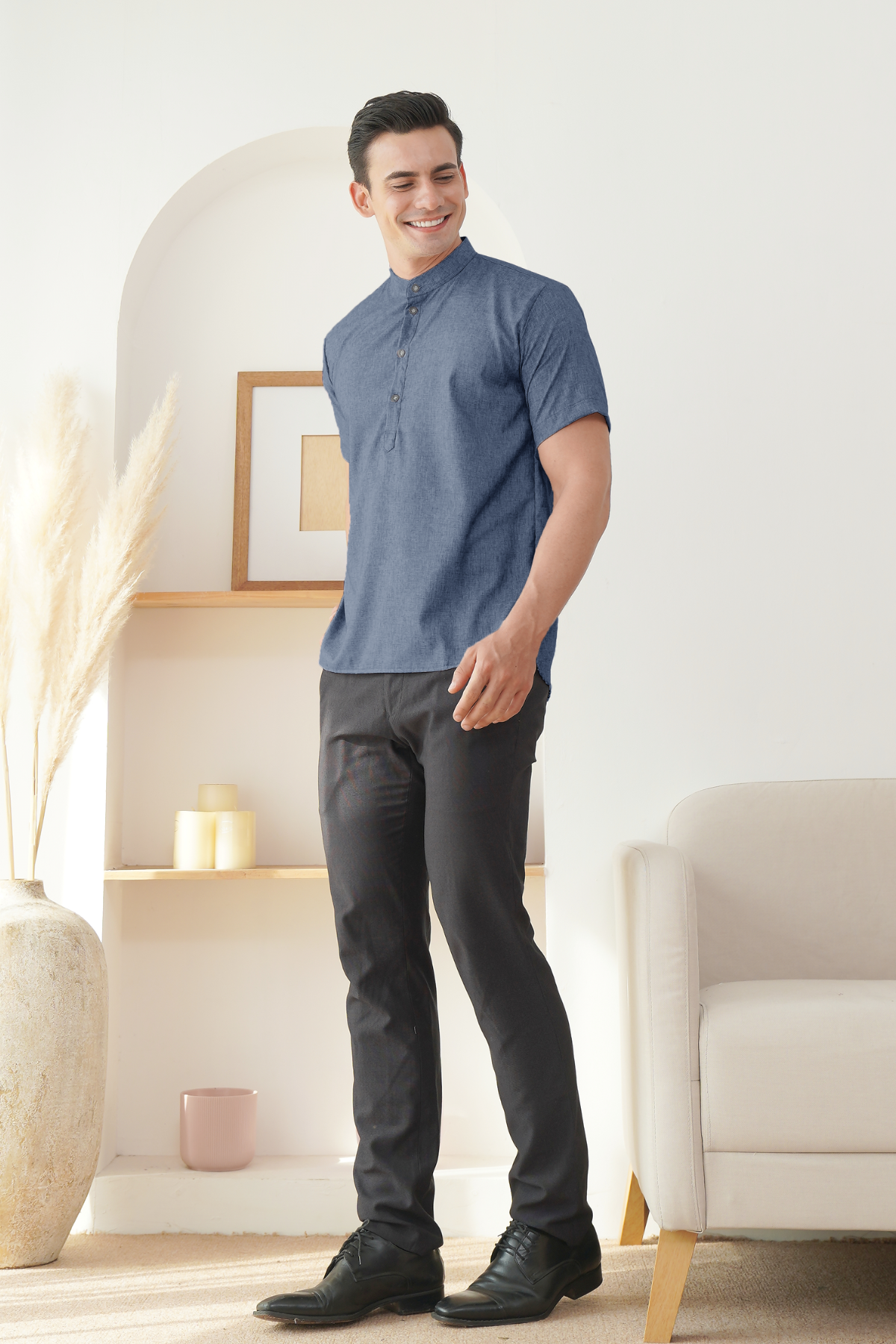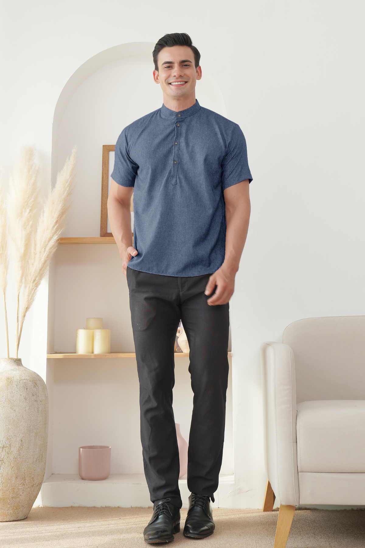 Baju Koko dengan cutting nyaman dan bahan katun berserat yang berkualitas bagus. Memberi kesan elegan dan simple look. Bahan katun kemeja yang sangat adem sehingga nyaman dipakai seharian.