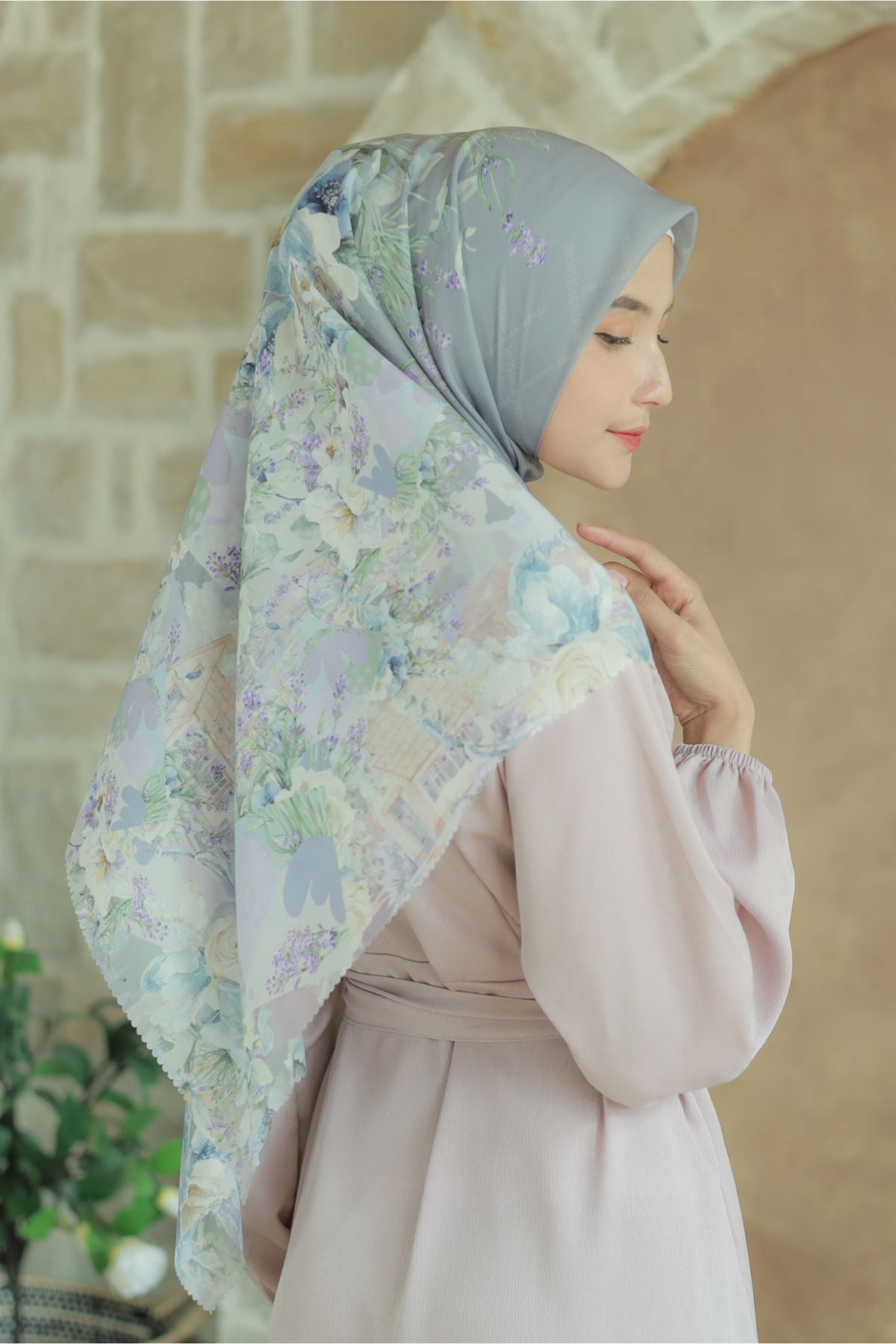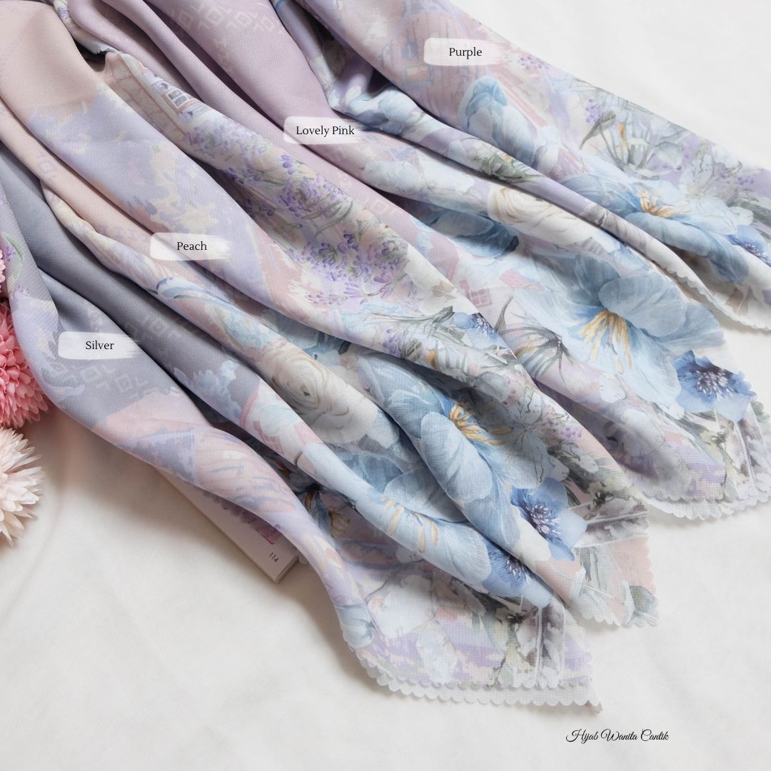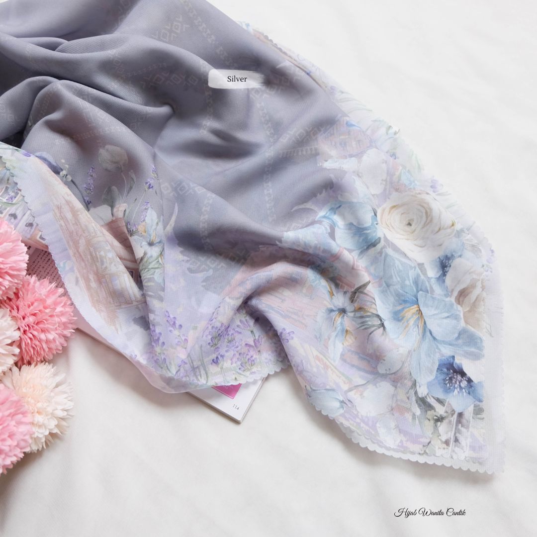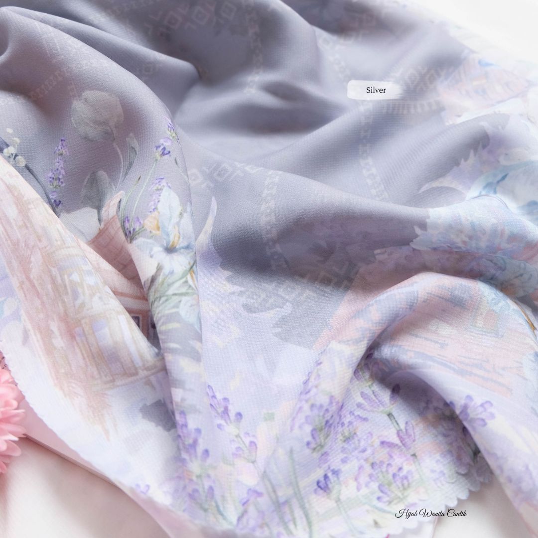 Hijab segiempat premium dengan motif terinspirasi dari keindahan bunga lavender. Dipadu dengan nuansa rumah-rumah pedesaan yang tenang dan memukau. Teknologi printing watercolor style khas HIRA seperti lukisan mewah. Cantik dan syahdu banget ! dijamin membuat penampilan kamu makin berkesan!