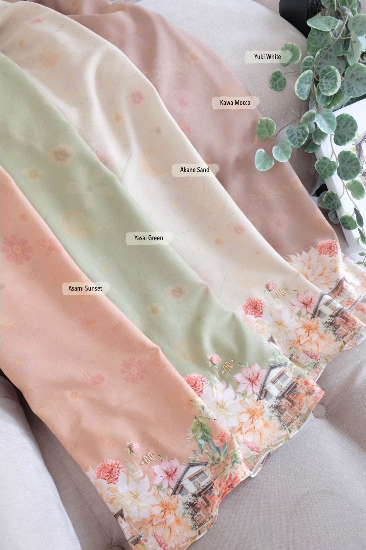 Dengan motif bunga yang cantik dipadu dengan motif “traditional house japan” yang klasik dan unik namun tetap memberikan nuansa hangat dengan keindahannya.