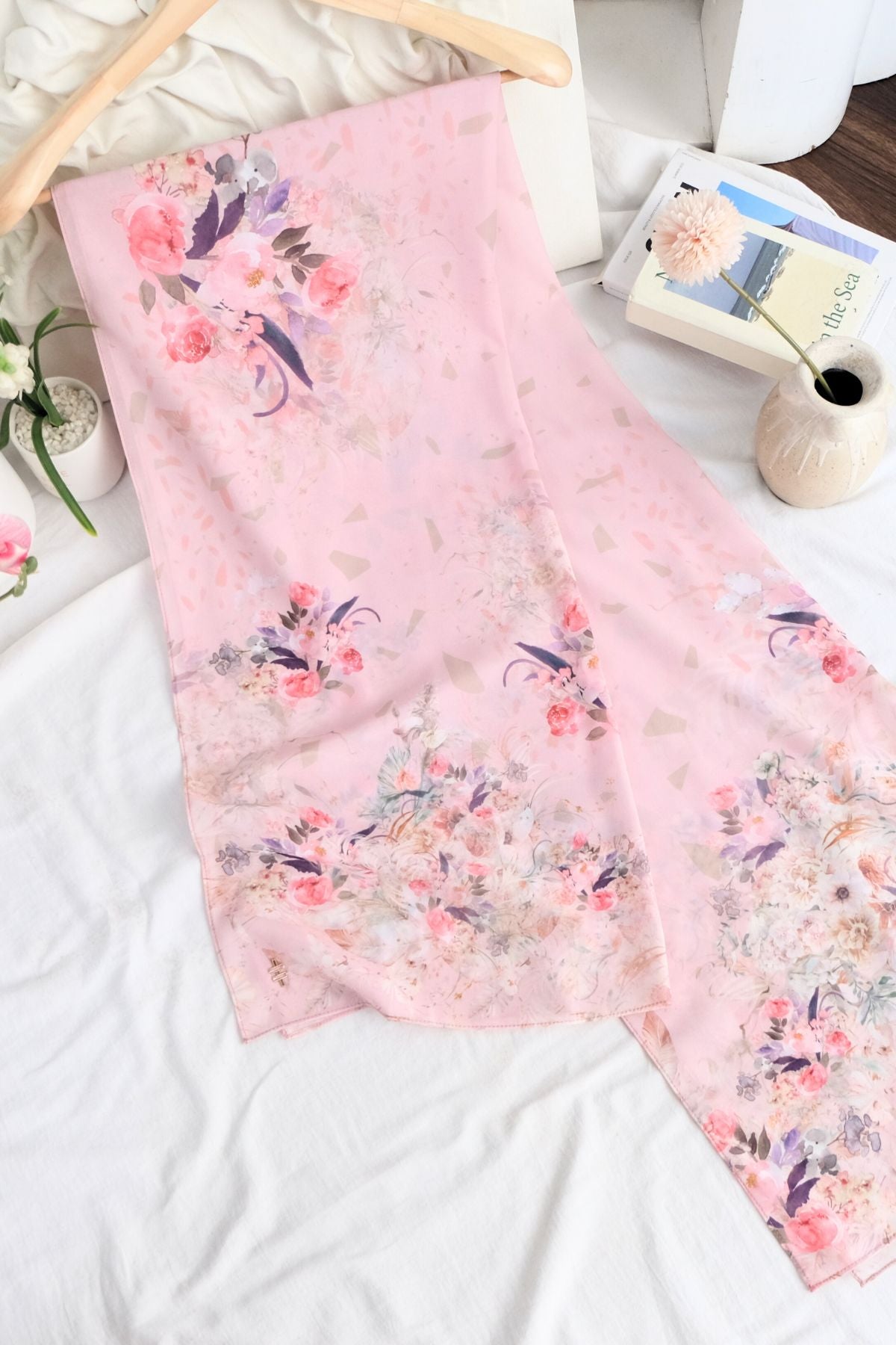 Hijab printing dengan motif exclusive Emily Series yang terinspirasi dari tema vintage garden yaitu nuansa keindahan bunga-bunga di taman dengan dekorasi klasik yang memukau. Dengan perpaduan warna-warna pastel yang lembut serta motif bunga yang sangat beragam menggambarkan rangkaian aneka bunga yang tertata cantik di taman. Pada bagian tengah scarf terdapat ornamen-ornamen abstrak dengan warna yang menyatu dengan warna dasar, sehingga memberi kesan clean dan elegan saat dipakai.