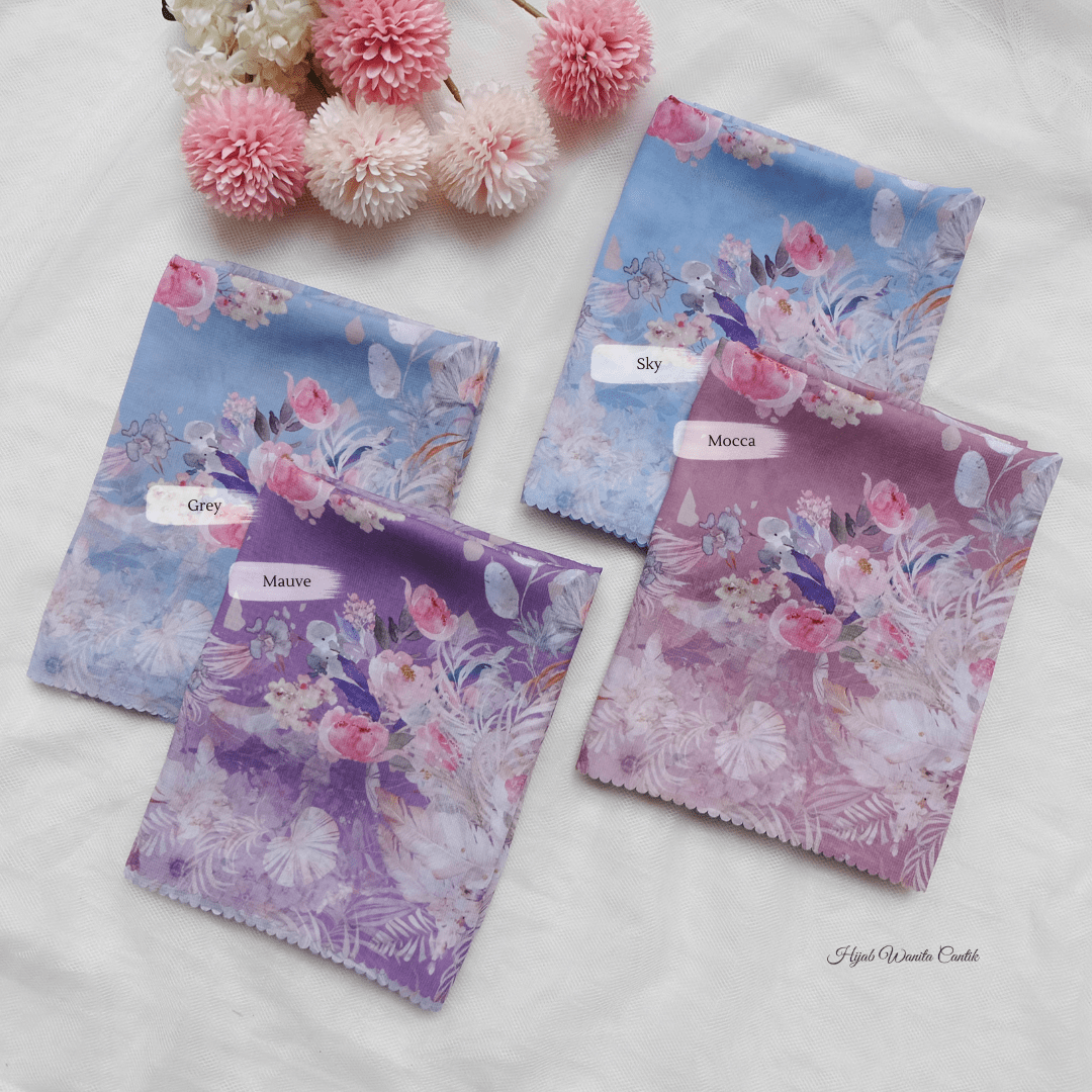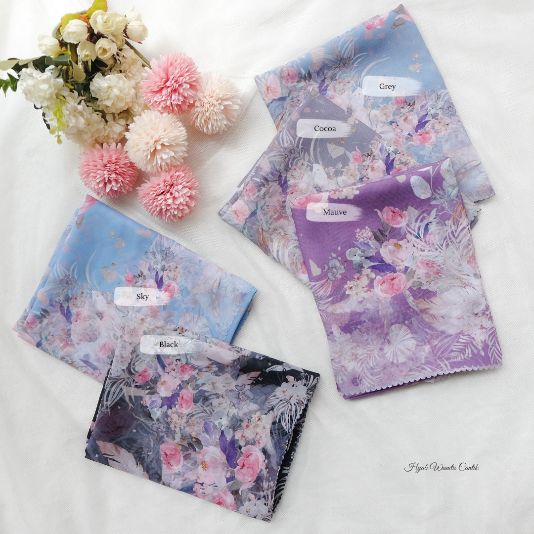 Hijab printing dengan motif exclusive Emily Series yang terinspirasi dari tema vintage garden yaitu nuansa keindahan bunga-bunga di taman dengan dekorasi klasik yang memukau. Dengan perpaduan warna-warna pastel yang lembut serta motif bunga yang sangat beragam menggambarkan rangkaian aneka bunga yang tertata cantik di taman. Pada bagian tengah scarf terdapat ornamen-ornamen abstrak dengan warna yang menyatu dengan warna dasar, sehingga memberi kesan clean dan elegan saat dipakai.