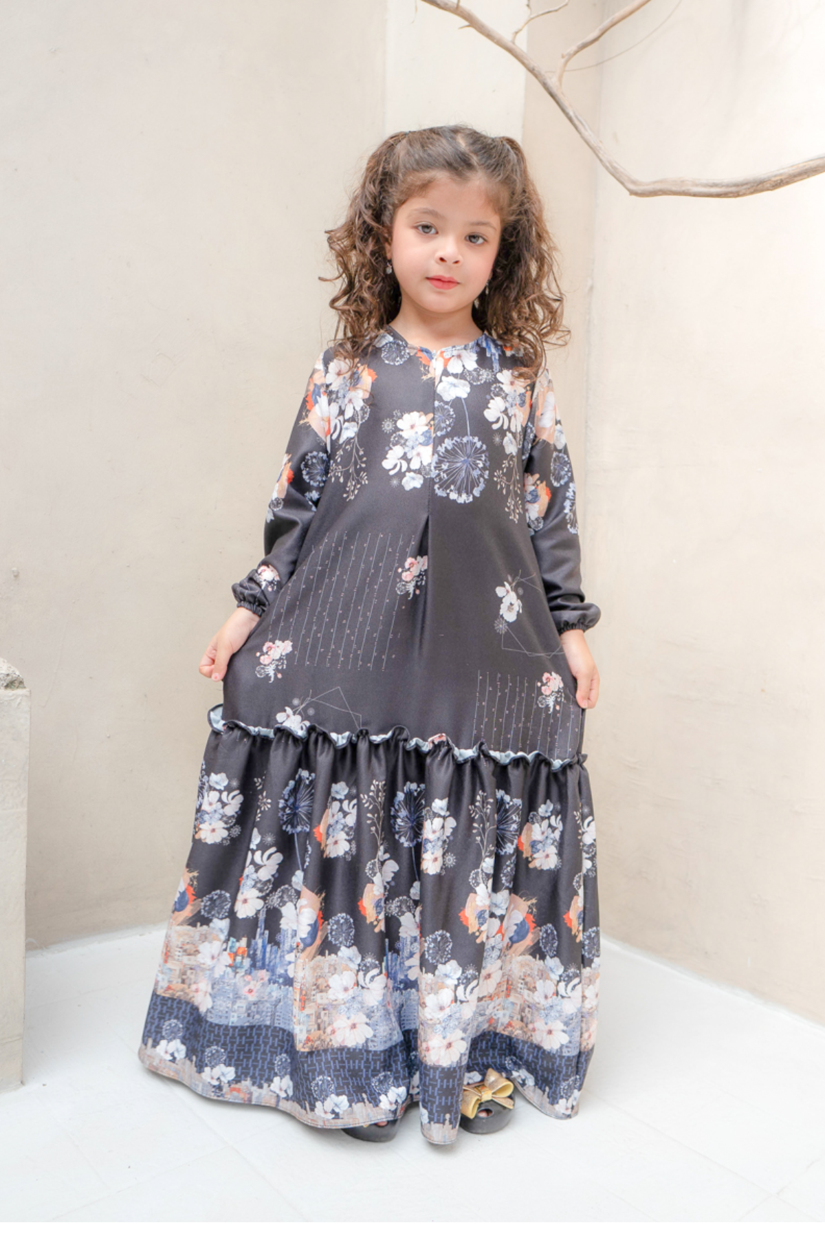 Riuh Kota Dress Girl Family Set | Sarimbit Lebaran - RK12.1 Black