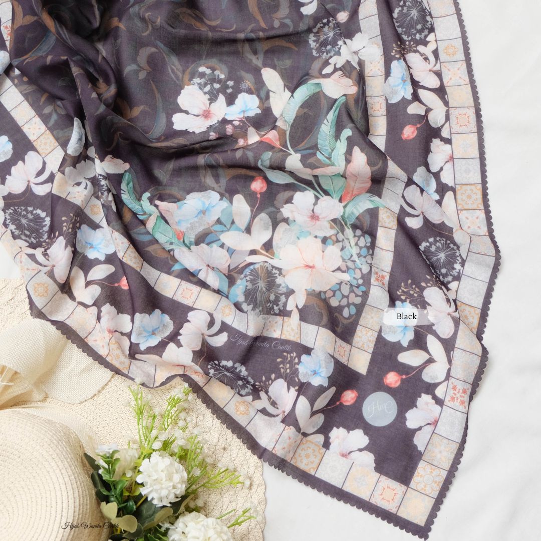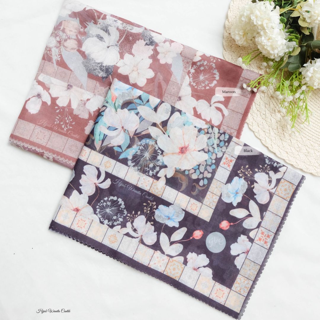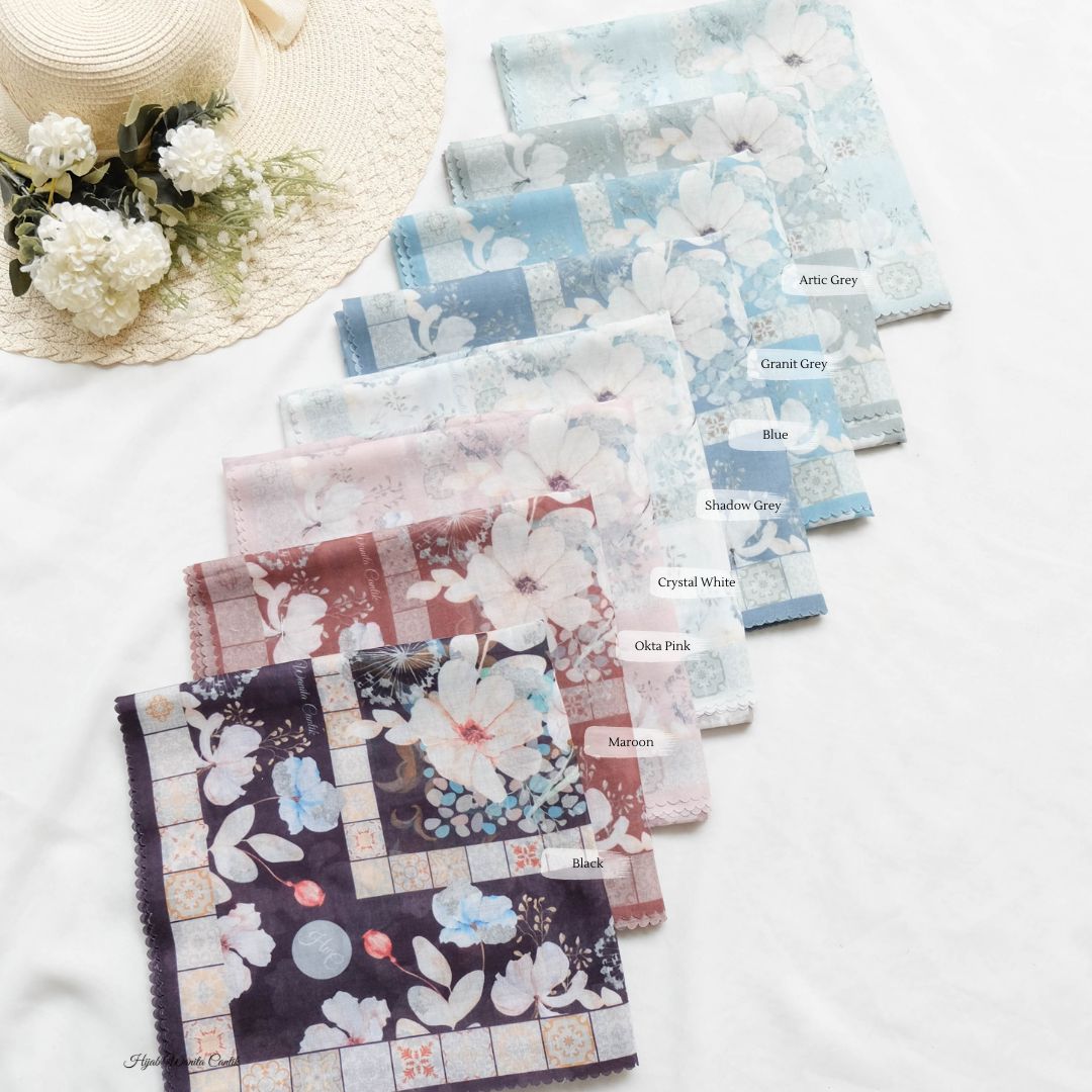 Hijab motif printing super cantik dengan motif yang terinspirasi dari bunga Azalea. Dengan 10 warna-warna basic dan soft semuanya lengkap! Perpaduan bunga-bunga dengan ornamen geometris berwarna senada dan tidak terlalu mencolok, memberi kesan cantik, kalem, dan elegan banget!