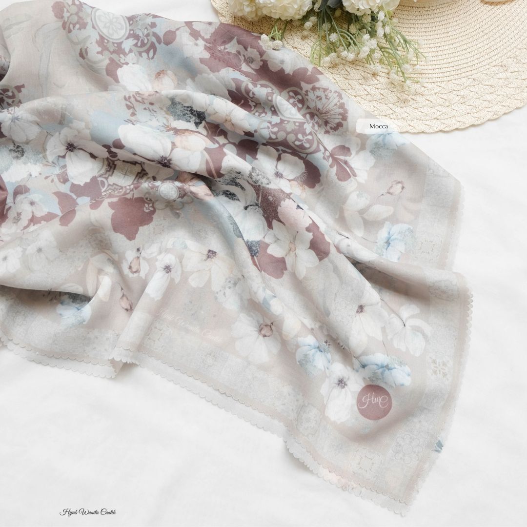 Hijab motif printing super cantik dengan motif yang terinspirasi dari bunga Azalea. Dengan 10 warna-warna basic dan soft semuanya lengkap! Perpaduan bunga-bunga dengan ornamen geometris berwarna senada dan tidak terlalu mencolok, memberi kesan cantik, kalem, dan elegan banget!